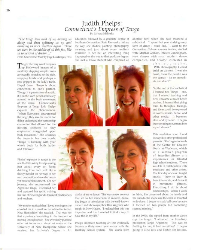 Barbara Malinsky interviewed me for Connecticut’s Ink Magazine August 2011 issue. The article covered the flavor of what I and my tango friends are about and how much we enjoy dancing and building tango in Connecticut. The magazine highlights people, places and events of interest throughout the state.